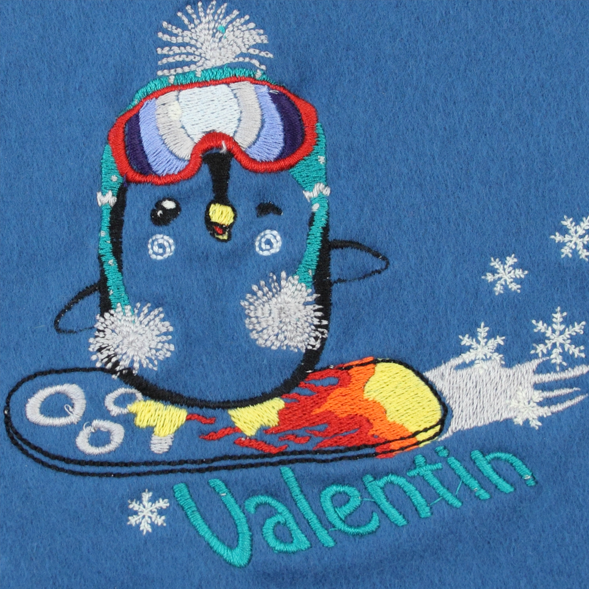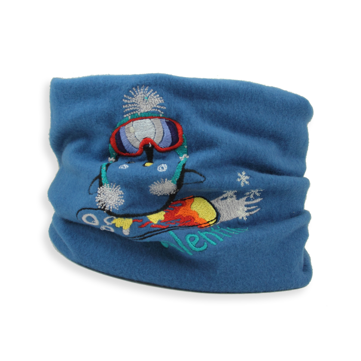 Extra-soft scarf designed especially for children! Perfect for cold periods, ideal for outdoor games, the mountains, and winter sports. Made of 100% organic cotton, this neck warmer is woven with an elastic mesh and is easy to put on and take off. Add the child’s first name to personalize, with embroidery work depicting surfing penguin that makes this scarf unique! Our children’s scarves are embroidered in our workshop in Lyon upon reception of your order!