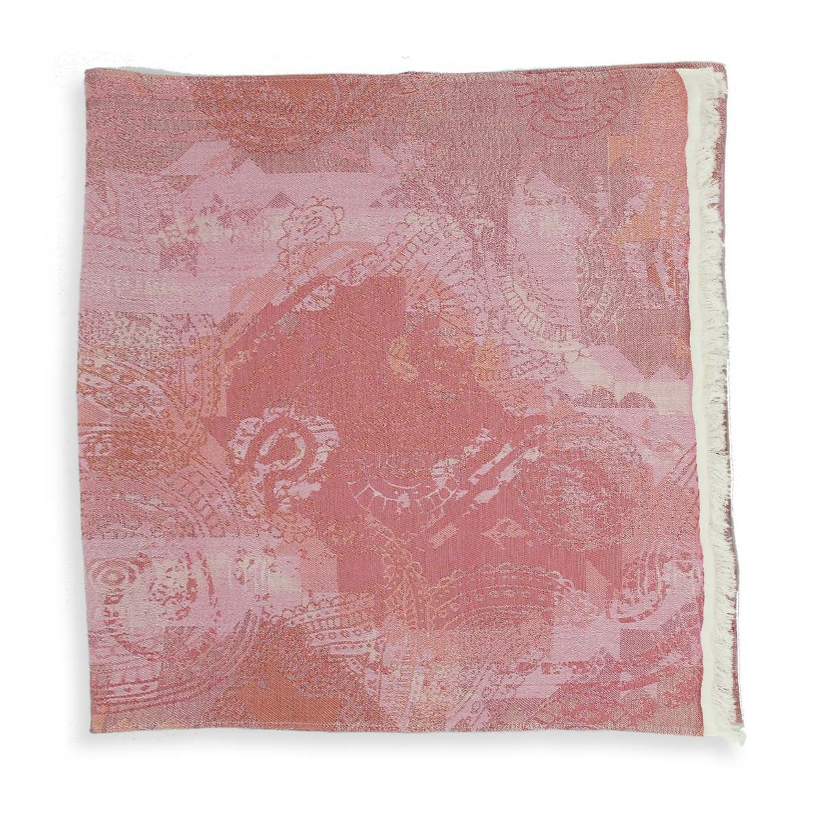 Scarf in a beautiful composition made entirely of natural materials: Merino wool, silk, and cotton for a soft and comfortable feel. This scarf is warm without being too thick. Several patterns intertwine and overlap to create a colorful ambiance in shades of multiple pink colors, enhanced by a hint of powdered. The finishes are meticulous, with sweeping fringes at the hem and side hems. Ideal for fall or winter. A responsible purchase, 100% made in France, to give as a birthday or holiday gift.