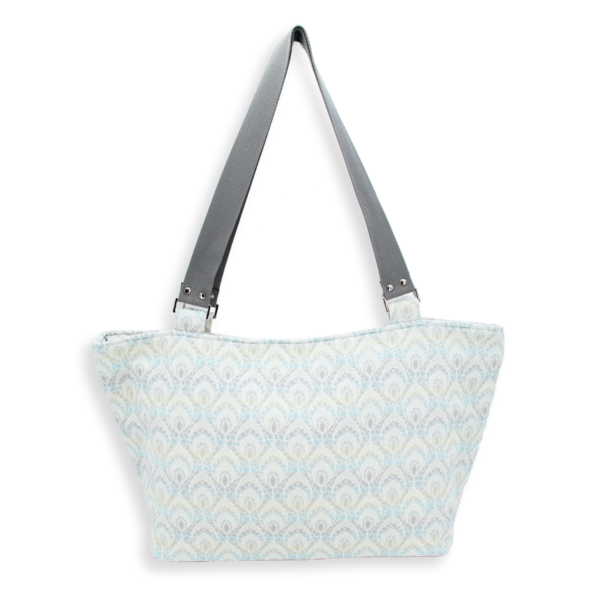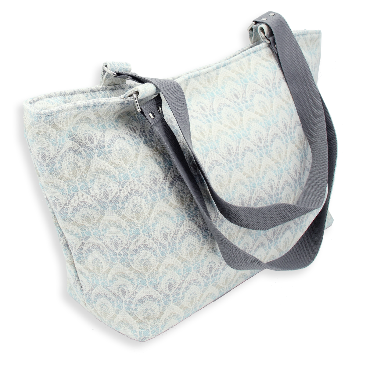 This bag’s fabric is known as a Jacquard pattern fabric. Jacquard weaving is a traditional skill originating in Lyon and has been passed down to us from generation to generation for several centuries. Today, La Fabrique d’écharpe’s Jacquard looms are true technological gems, combining speed and quality performance all while respecting the rules of Jacquard weaving. Jacquard weaving began with Joseph-Marie Jacquard, who, in 1801 invented and patented the so-called “Jacquard” technique which automated the production of the pattern by using punched cards. And so the ancestor of the computer was born!